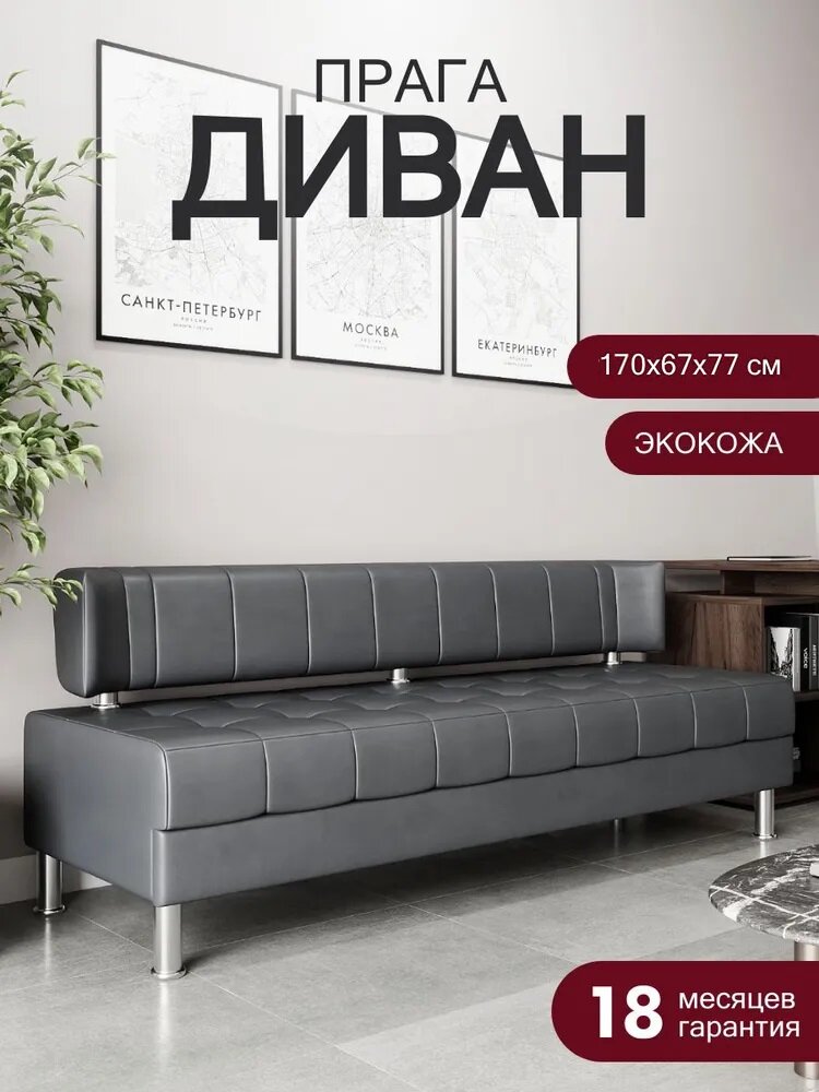 Диван прямой прага 170х67х77 см, нераскладной, серая экокожа: сравнение цен, характеристики, фото, актуальное наличие и цены.