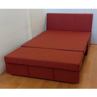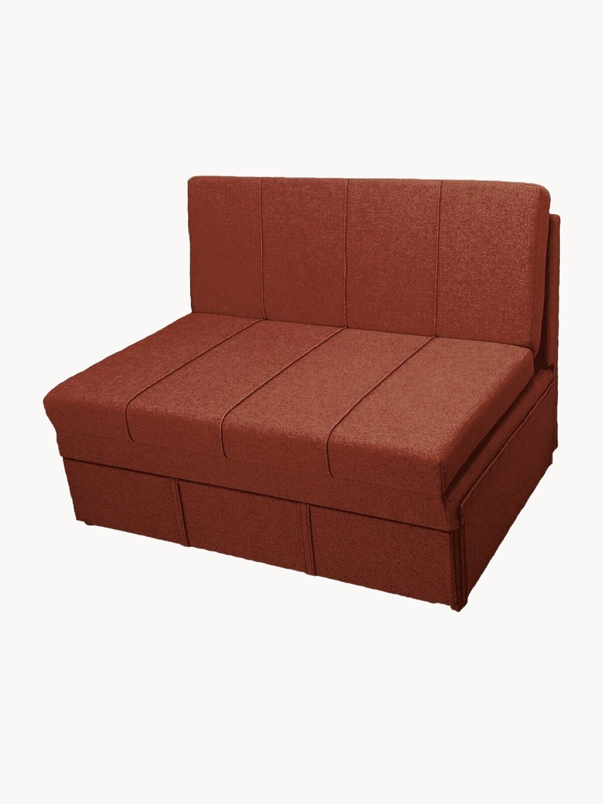 Раскладной диван-кровать без подлокотников "Сёма" ширина 140 см. от производителя "StylChairs", с небольшим ящиком для белья и с мягкой спинкой. Простая и надежная конструкция на колёсиках позволяет легко разложить диван в кровать. Диван-кровать можно разложить на 2/3 длины, спинка на молнии - её можно отстегнуть. В таком положении длинна спального места составит 135 см. Обивка лицевой части выполнена из ткани рогожки "Monaco 07" (Adilet) кирпичного цвета. В производстве дивана "Сёма" используется ППУ повышенной плотности ST 28-36, толщиной 80 мм. Каркас: брус 50*40 мм, ЛДСП 16 мм, фанера 15 мм, ламели. • Общий размер в сложенном виде: 140*81*83 см. (Ш*Г*В) • Размеры сиденья дивана: 140*60*42 см. (Ш*Г*В) • Высота спинки 42 см. • Общий размер в разложенном состоянии: 140*190*73 см. (Ш*Г*В) • Размеры спального места: 140*183*32 см. (Ш*Г*В) • Размеры бельевого ящика: 128*64*11 см. (Ш*Г*В) • Рекомендуемая максимальная нагрузка для ежедневного использования до 120 кг. • Гарантийный срок 6 месяцев. • Поставка дивана осуществляется в собранном виде. Внимание! Цвет мебели на экране монитора может отличаться от реального. Специфика производства допускает незначительные отклонения в цветовой гамме отгружаемых изделий в разных партиях выпуска, что не является основанием для возврата или обмена продукции.