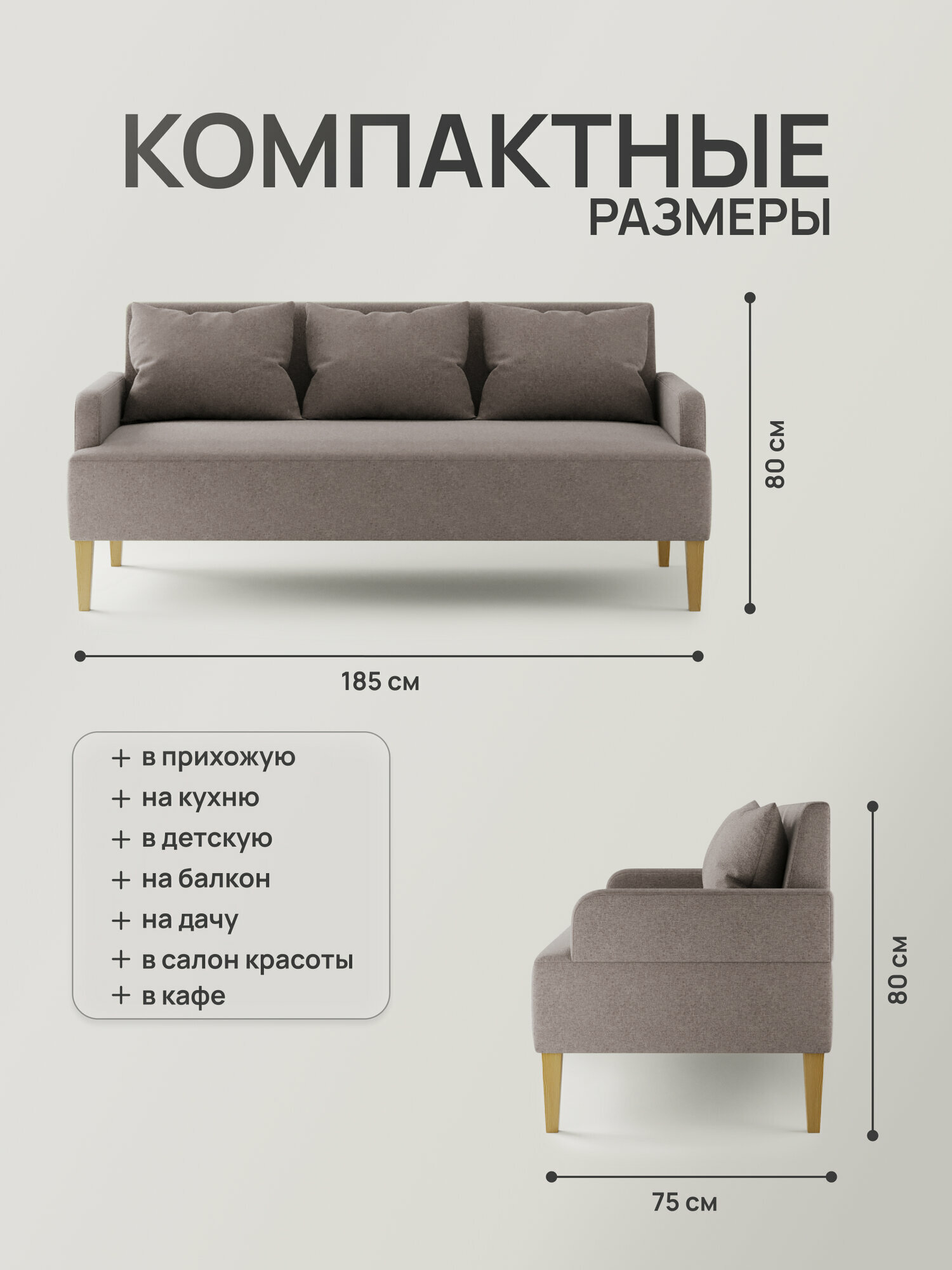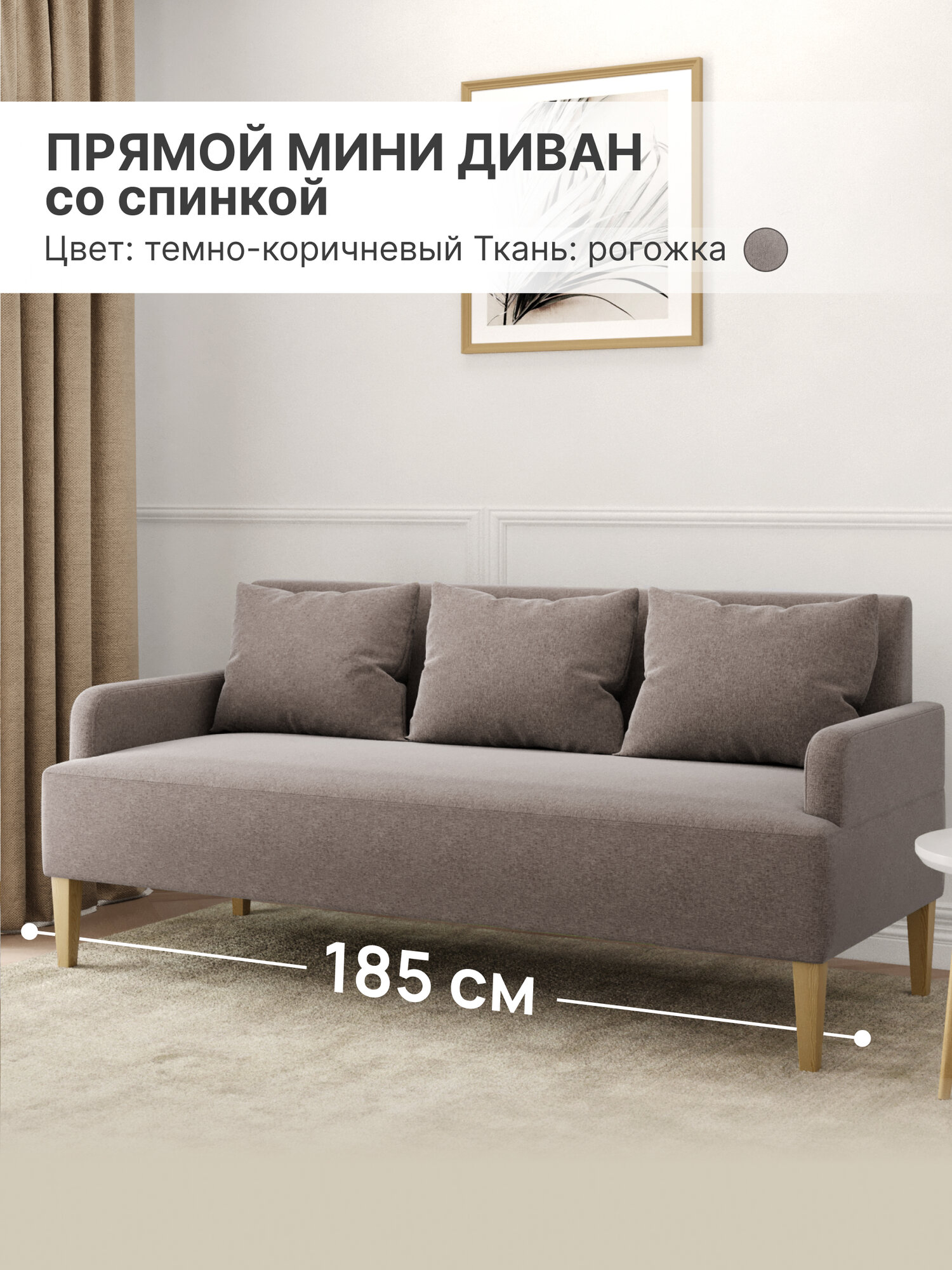 Диван прямой трехместный с подлокотниками, Рогожка, Темно-коричневый, ШхГхВ 185х75х80 см: сравнение цен, характеристики, фото, актуальное наличие и цены.