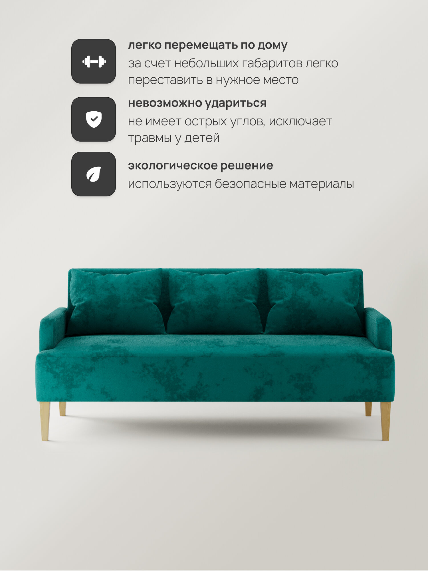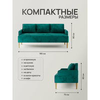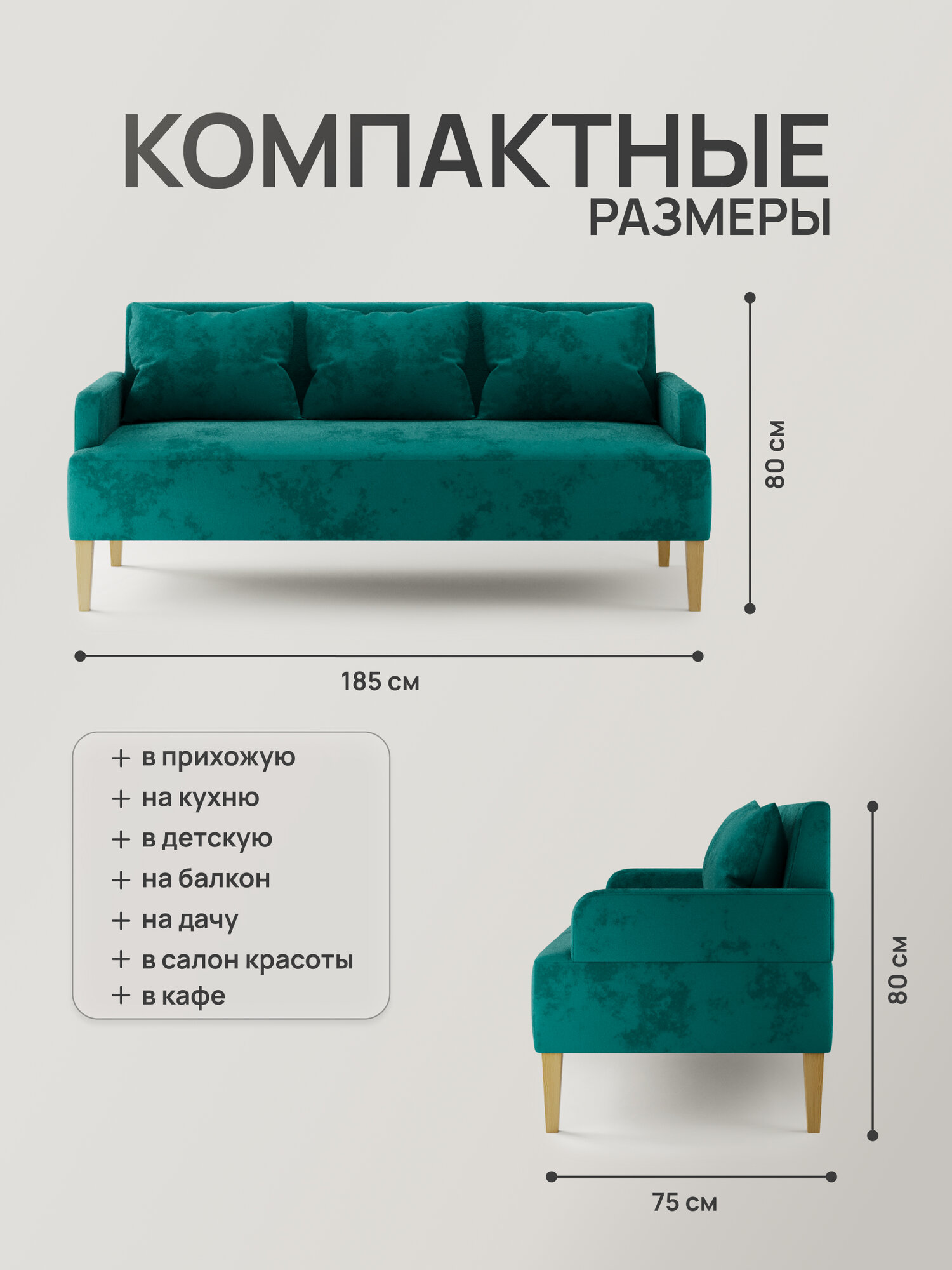 Диван прямой трехместный с подлокотниками, Велюр, Изумрудно-зеленый, ШхГхВ 185х75х80 см: сравнение цен, характеристики, фото, актуальное наличие и цены.