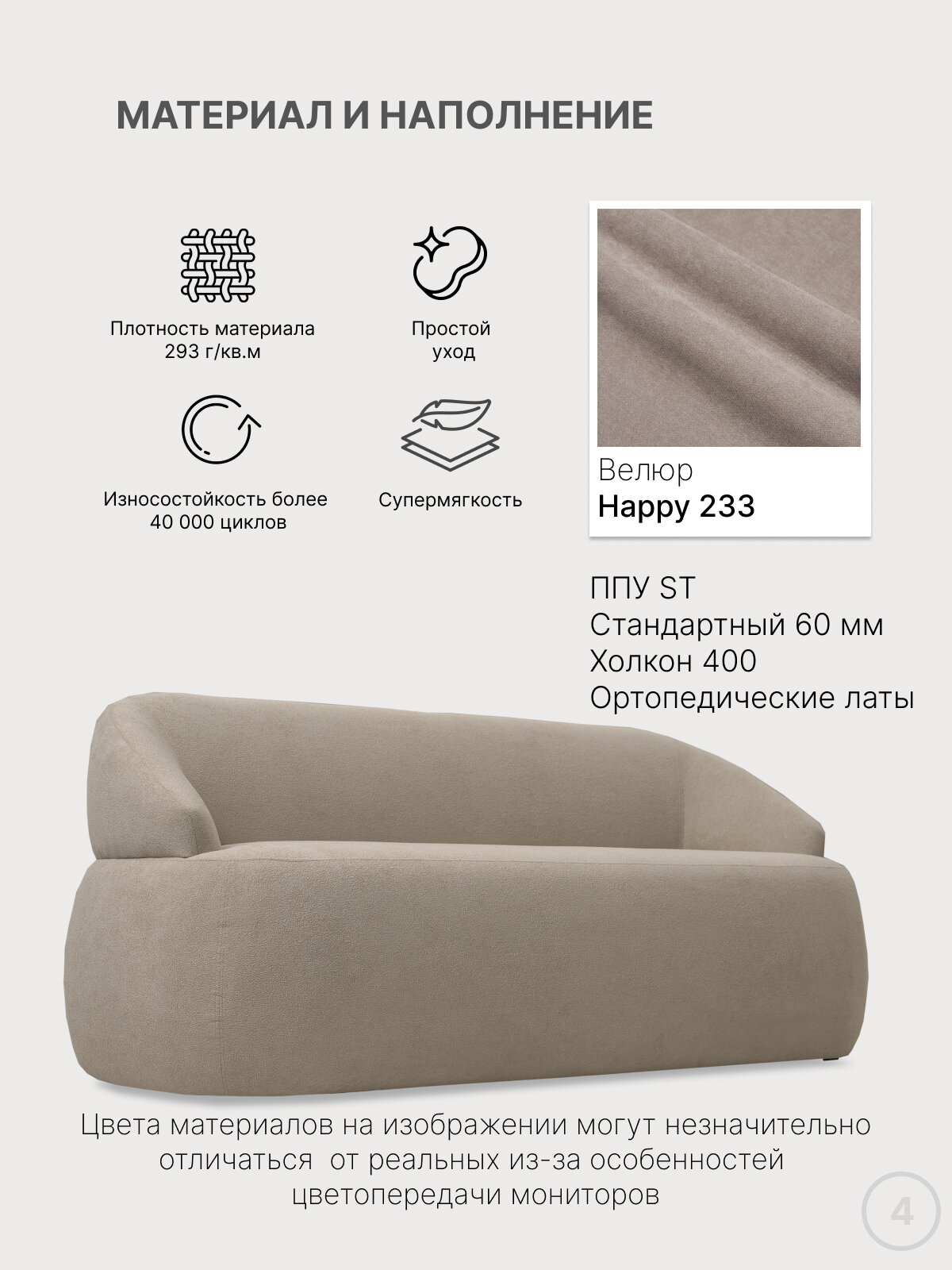 Купить Диван Пума 182x77x77 см, бежевый, прямой, нераскладной, дизайнерский, округлая форма, мягкий диван в гостиную, на кухню с доставкой по всей России.