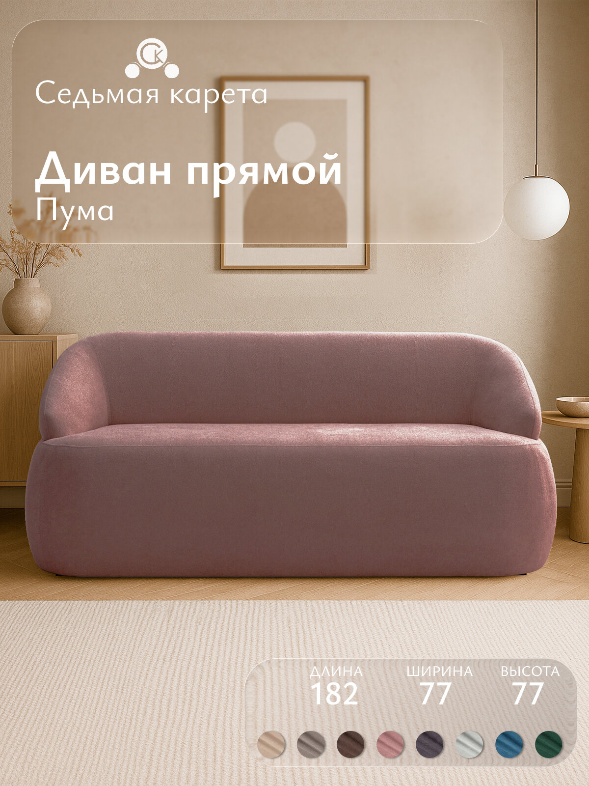 Диван Пума 182x77x77 см, розовый, прямой, нераскладной, дизайнерский, округлая форма, мягкий диван в гостиную, на кухню: сравнение цен, характеристики, фото, актуальное наличие и цены.