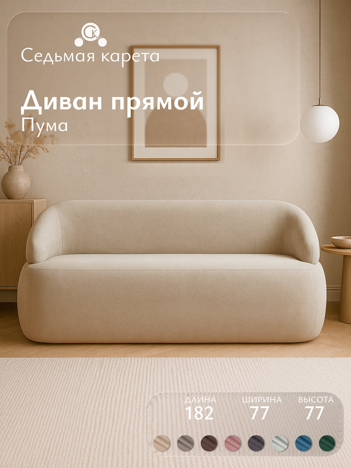 Диван Пума 182x77x77 см светло-бежевый, прямой, нераскладной, дизайнерский, округлая форма, мягкий, в гостиную, на кухню: сравнение цен, характеристики, фото, актуальное наличие и цены.