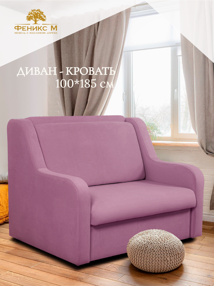 Спальное место 100см*185см, габариты в сложенном виде ширина:125см*глубина 100см, габариты в разложенном виде:125см*190см. Механизм раскладывания "Сабля". Вместительный ящик для белья. Ткань: велюр искусственный.