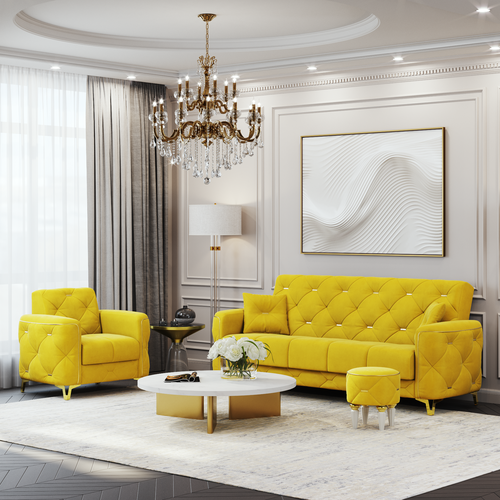 Диван раскладной Дубай Велюр жёлтый / ножки — золото Djivani