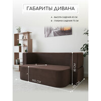 Купить Диван раскладной двухместный Дадли Лайт 195*105*80 см, трансформер, бескаркасный, со спальным местом 195*130 см, коричневый с доставкой по всей России.