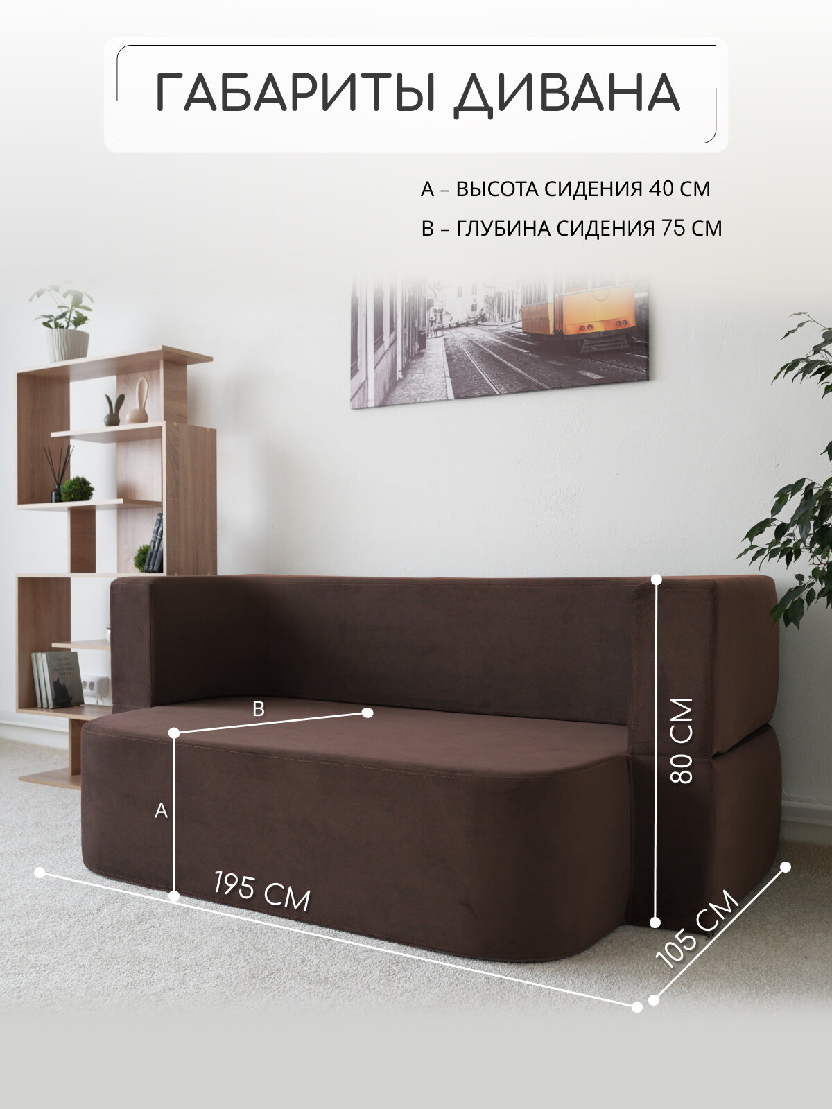Диван раскладной двухместный Дадли Лайт 195*105*80 см, трансформер, бескаркасный, со спальным местом 195*130 см, коричневый: сравнение цен, характеристики, фото, актуальное наличие и цены.