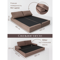 Купить Диван раскладной двухместный от Div-one 185*70 см, трансформер, бескаркасный, спальное место 185*140 см, коричневый с доставкой по всей России.