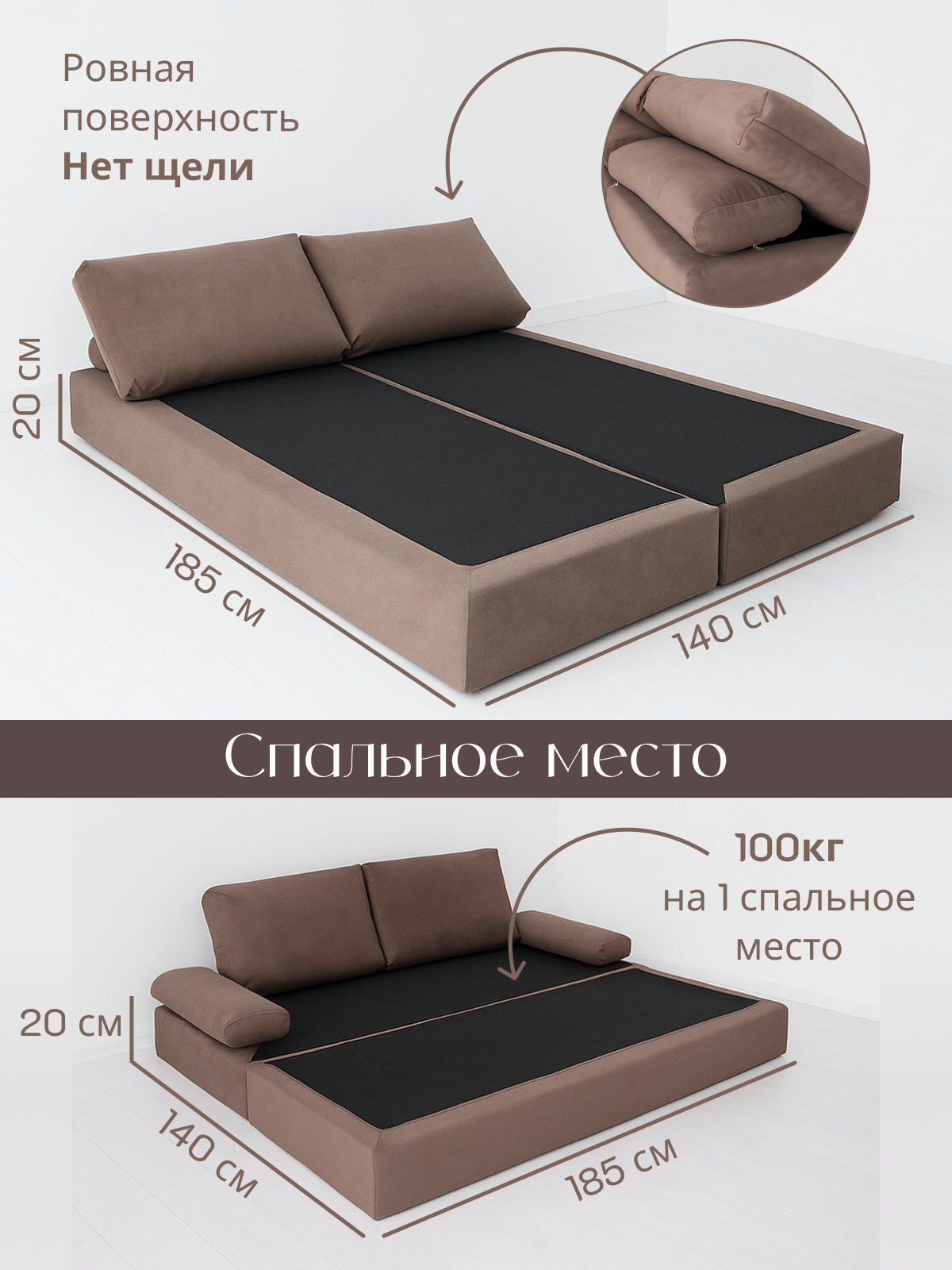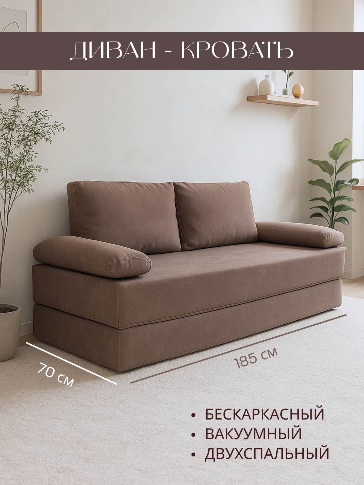 Диван раскладной двухместный от Div-one 185*70 см, трансформер, бескаркасный, спальное место 185*140 см, коричневый: сравнение цен, характеристики, фото, актуальное наличие и цены.