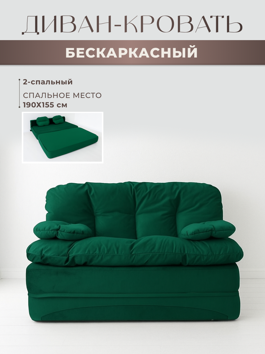Диван раскладной двухместный от Div-one 195*93 см, трансформер, бескаркасный, спальное место 155*190 см, зеленый: сравнение цен, характеристики, фото, актуальное наличие и цены.