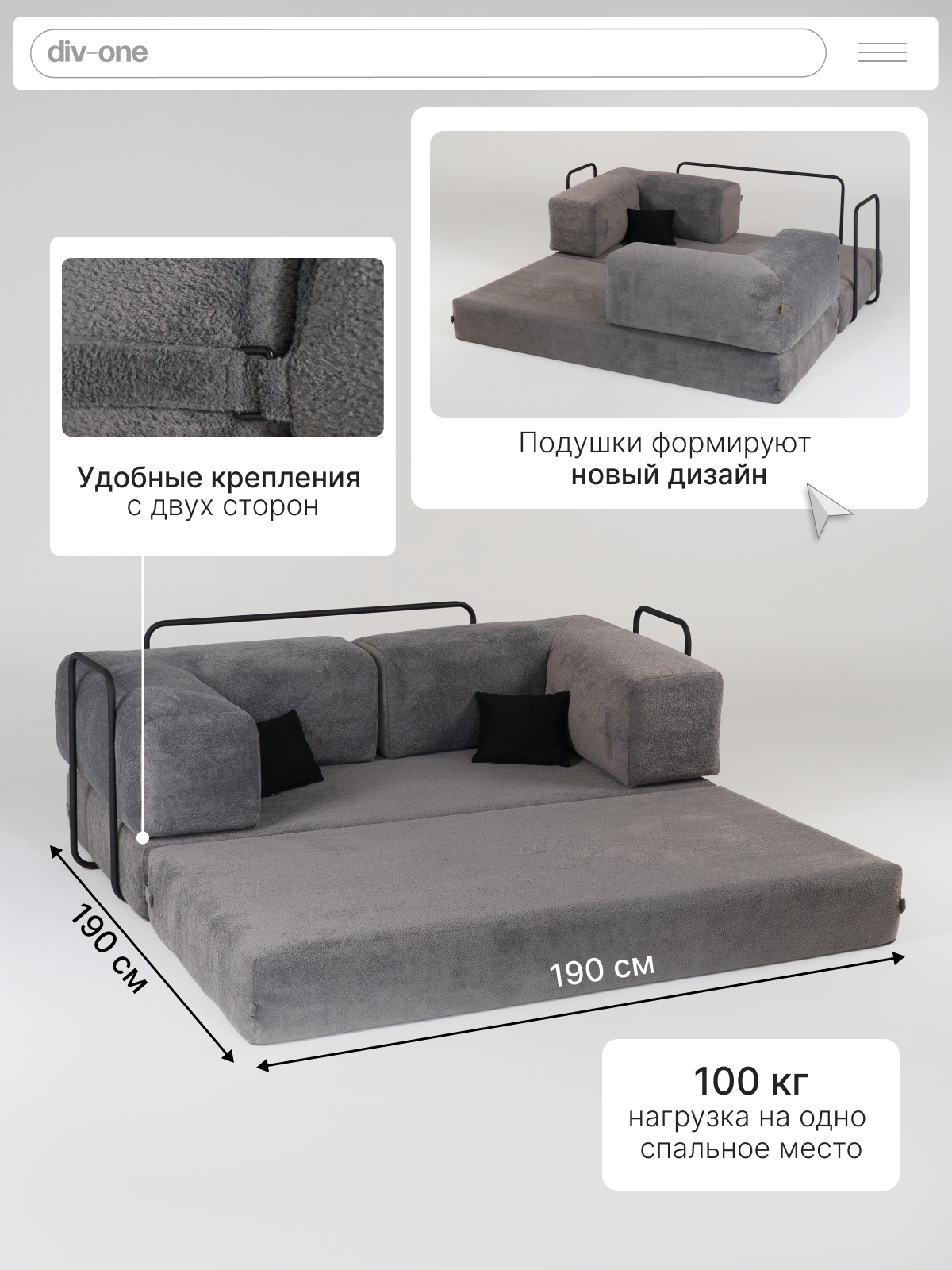 Диван раскладной двухместный Реймонд, трансформер, бескаркасный, со спальным местом 190х190 см, серый: сравнение цен, характеристики, фото, актуальное наличие и цены.