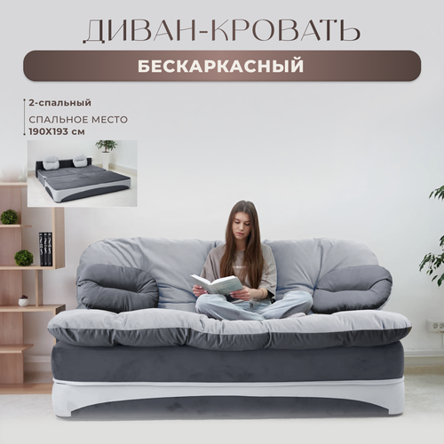Купить Диван раскладной двухместный от Div-one 195*93 см, трансформер, бескаркасный, спальное место 195*190 см, серый с доставкой по всей России.