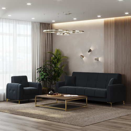 Купить Диван раскладной Мемфис Велюр черный / ножки — золото Djivani с доставкой по всей России.