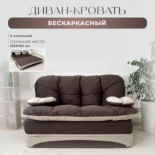 Купить Диван раскладной двухместный от Div-one 195*93 см, трансформер, бескаркасный, спальное место 155*190 см, коричневый с доставкой по всей России.