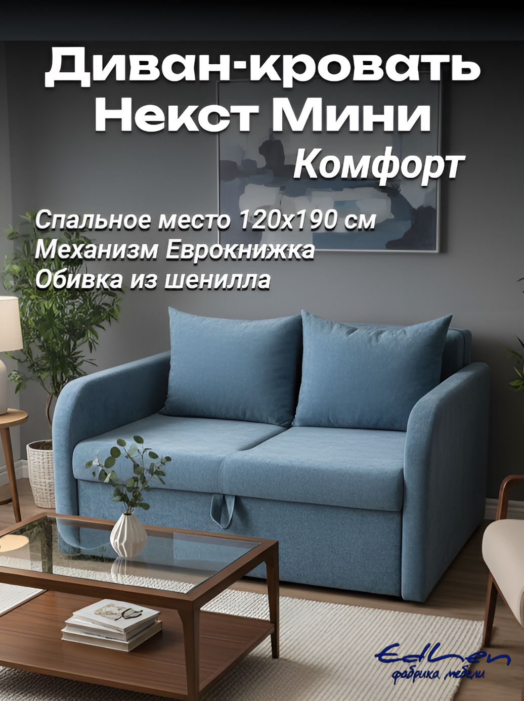 Купить Диван раскладной Некст Mini Комфорт шенилл Sky, еврокнижка EDLEN с доставкой по всей России. Диван раскладной Некст Mini Комфорт шенилл Sky, еврокнижка EDLEN: сравнение цен, характеристики, фото, актуальное наличие и цены.