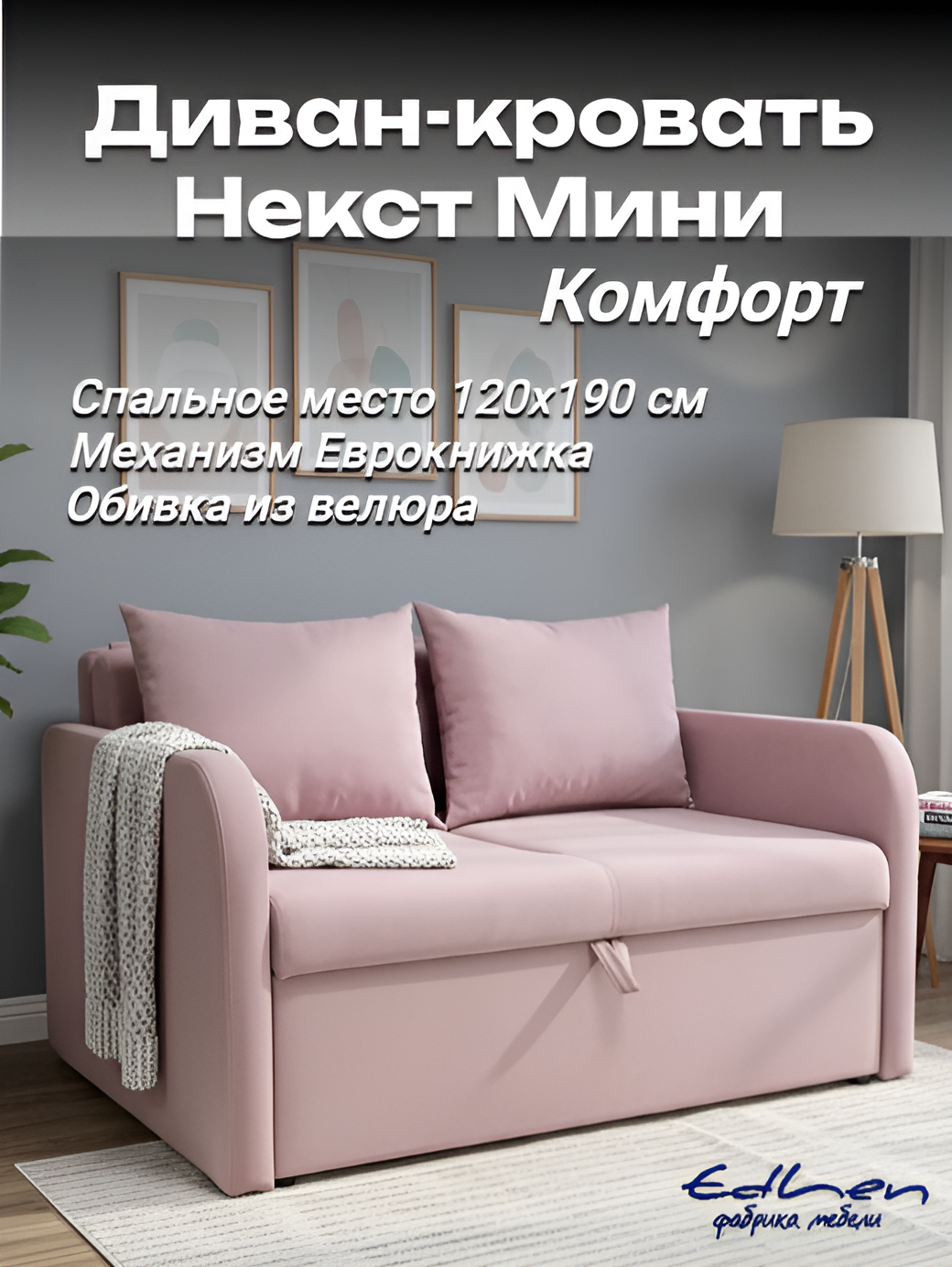 Диван раскладной Некст Mini Комфорт, велюр Pudra, спальное место 120х190 см, EDLEN: сравнение цен, характеристики, фото, актуальное наличие и цены.