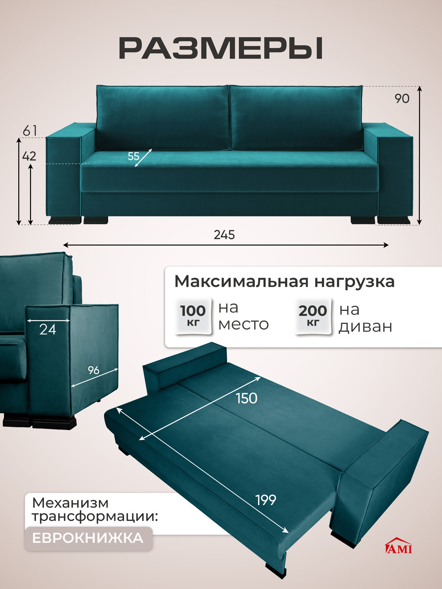 Диван кровать двухместный раскладной прямой Кельн в гостиную, еврокнижка 245х90 см вельвет морская волна Ами Мебель: сравнение цен, характеристики, фото, актуальное наличие и цены.