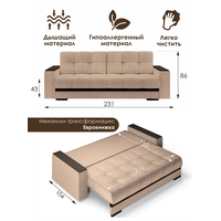 Диван раскладной прямой, диван кровать Николетти, 231х104х86 см, бежевый флок, АМИ мебель Беларусь: сравнение цен, характеристики, фото, актуальное наличие и цены.