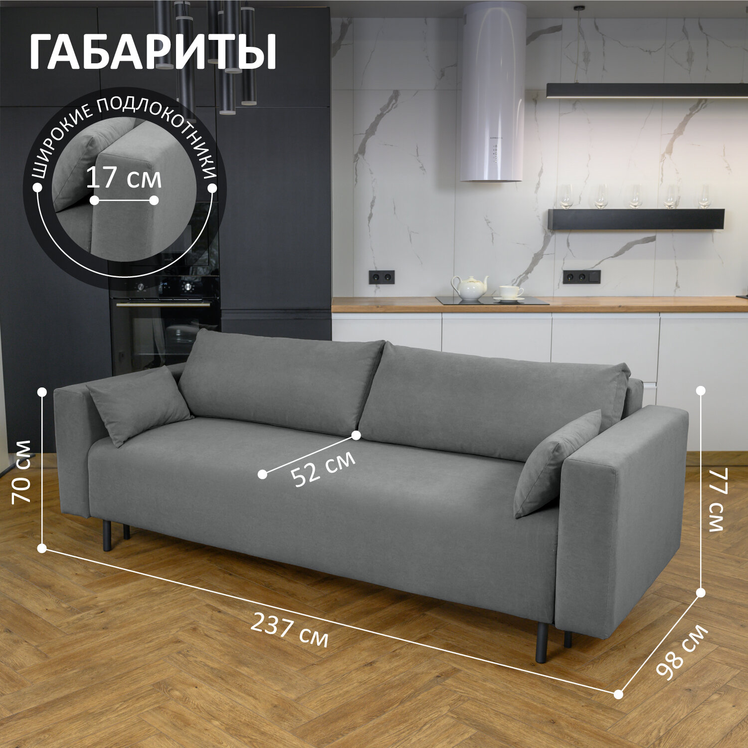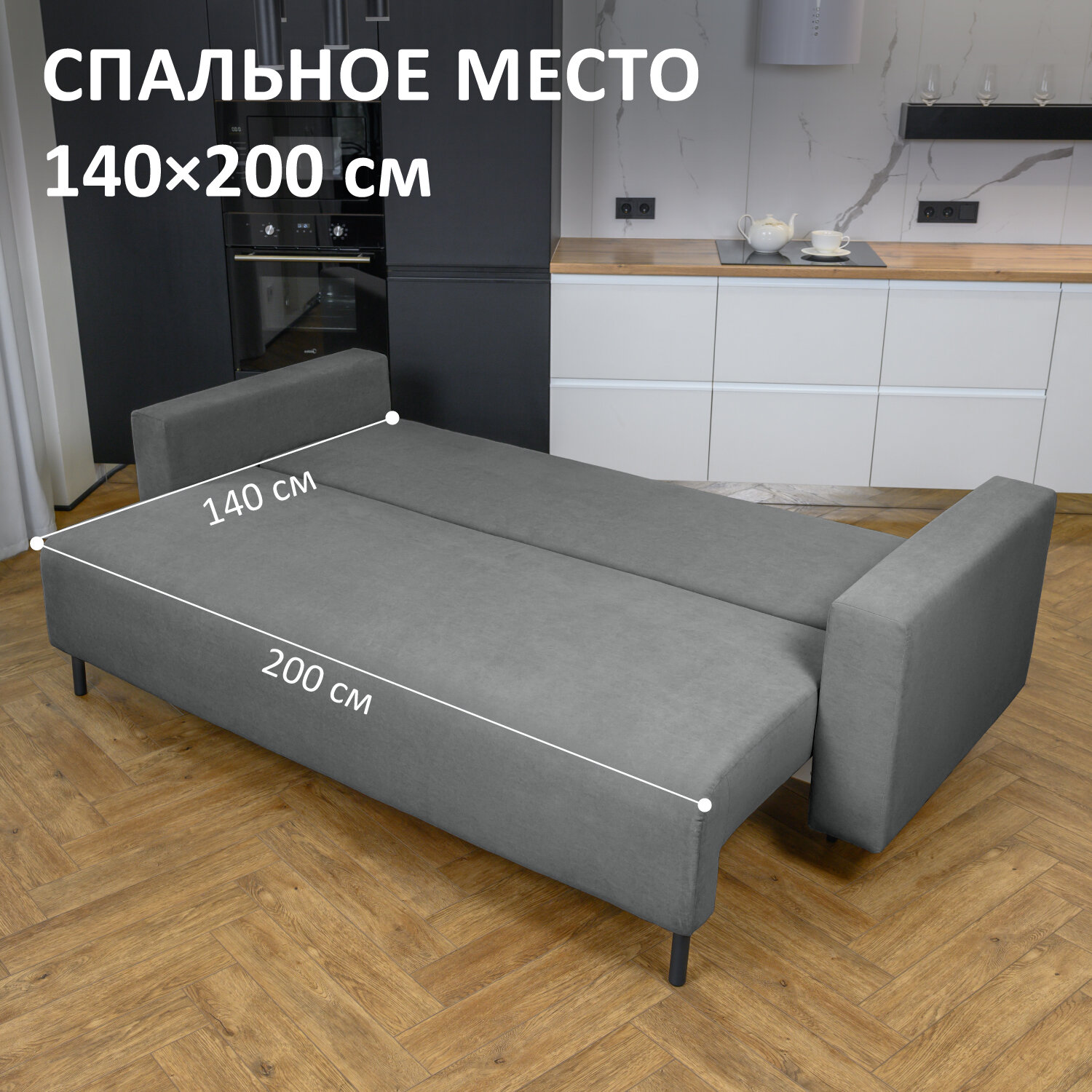 Купить Диван кровать раскладной Romack Malta еврокнижка 140×190 Серый c широкими подлокотниками в гостиную, на кухню с доставкой по всей России.