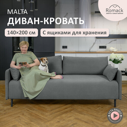 Диван кровать раскладной Romack Malta еврокнижка 140×190 Серый с узкими подлокотниками в гостиную, на кухню: сравнение цен, характеристики, фото, актуальное наличие и цены.