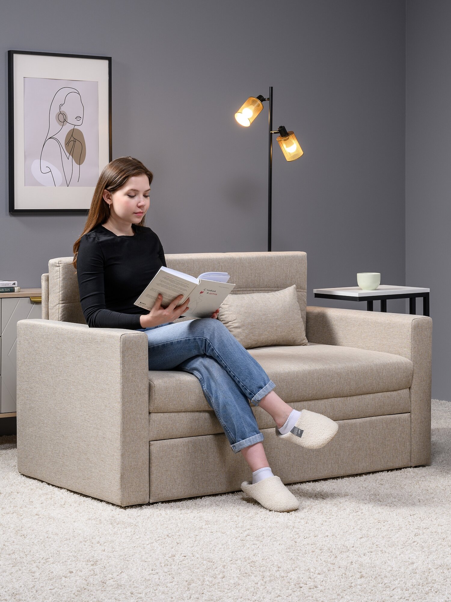 Прямой диван-кровать Вилли ТД 301/1, раскладной, выкатной, 195×120см спальное место, жаккард Тесла, крем: сравнение цен, характеристики, фото, актуальное наличие и цены.