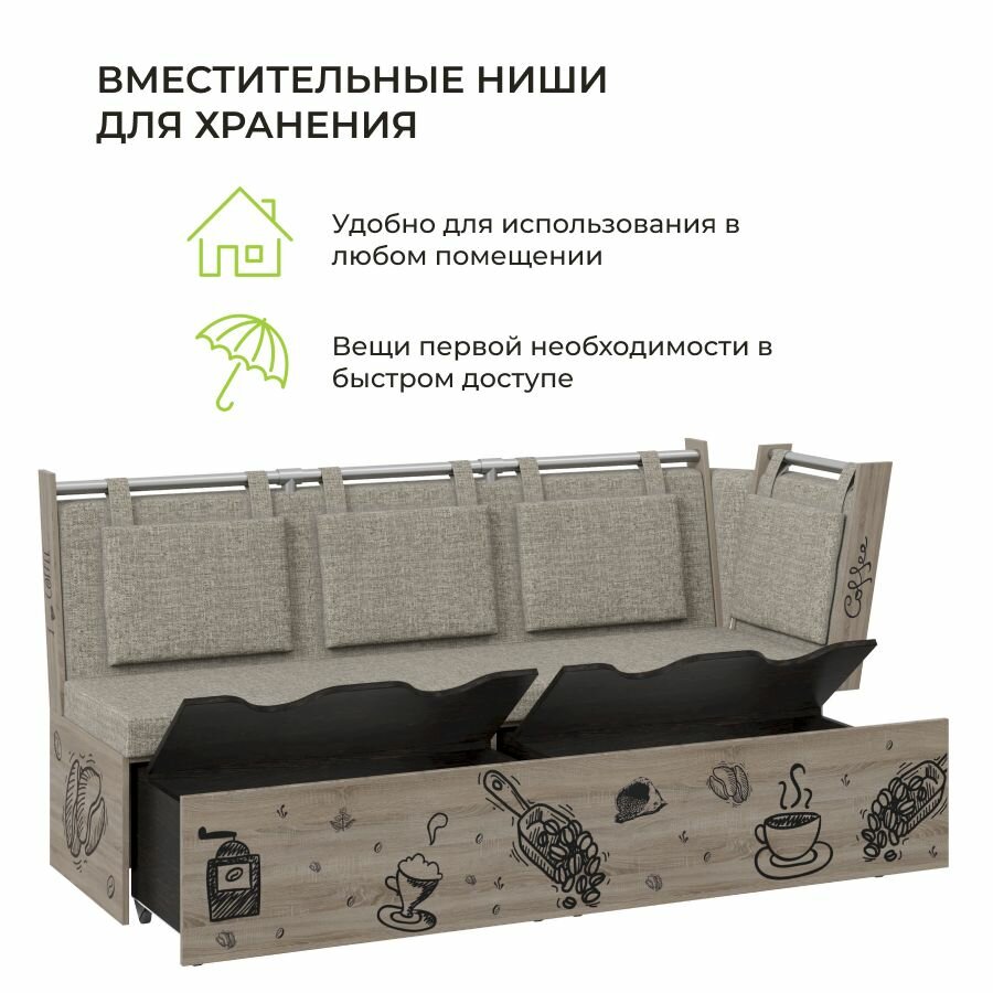 Диван BONMEBEL Роденго, СО СПАЛЬНЫМ МЕСТОМ, дуб сонома трюфель, Рогожка бежевая, скамья с ящиком, 189х66(100)х88 см: сравнение цен, характеристики, фото, актуальное наличие и цены.
