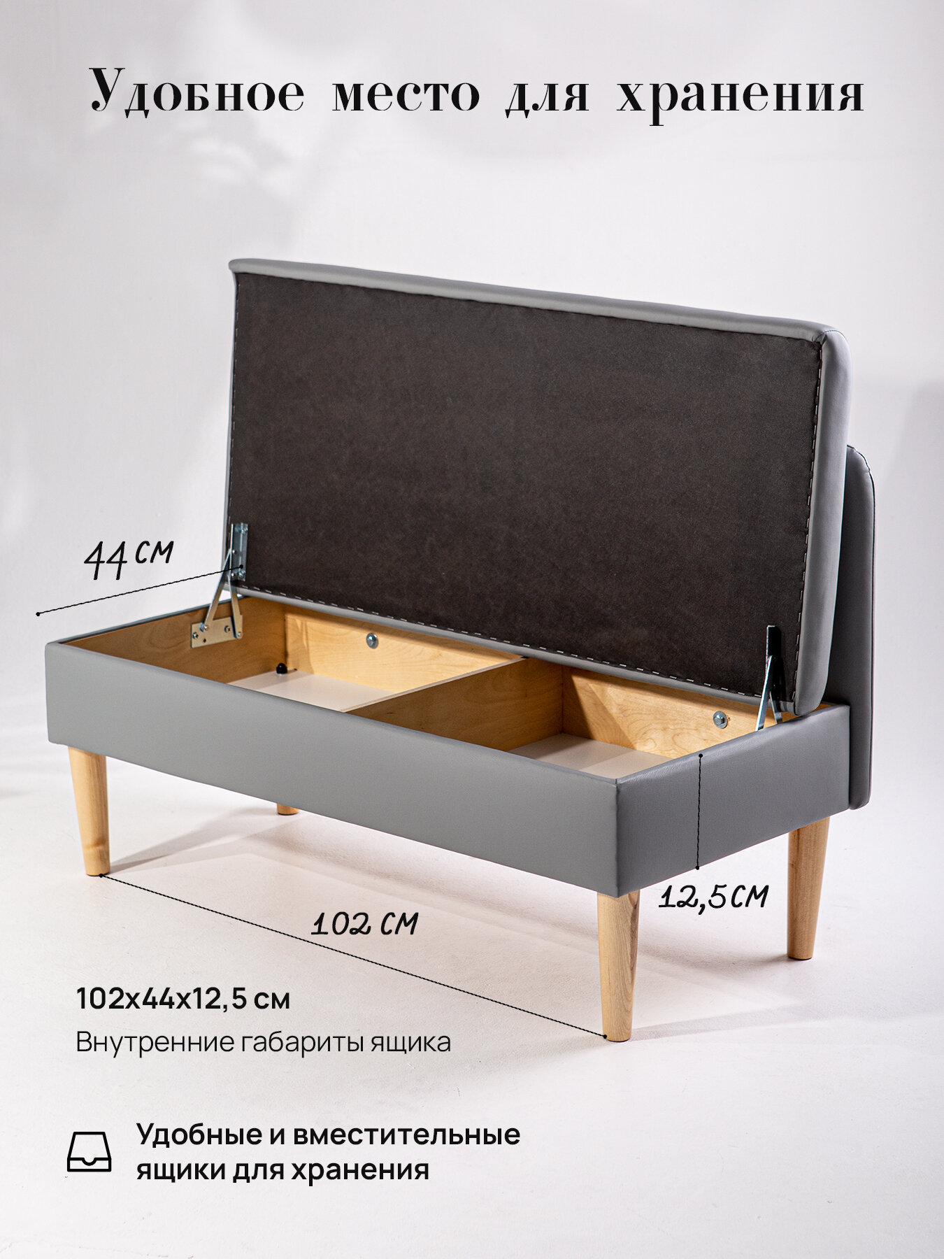 Диван с ящиком (кухню, офис, прихожую, балкон, школу, общественных пространств) экокожа серая (Ш110-Г50-В70 см).: сравнение цен, характеристики, фото, актуальное наличие и цены.