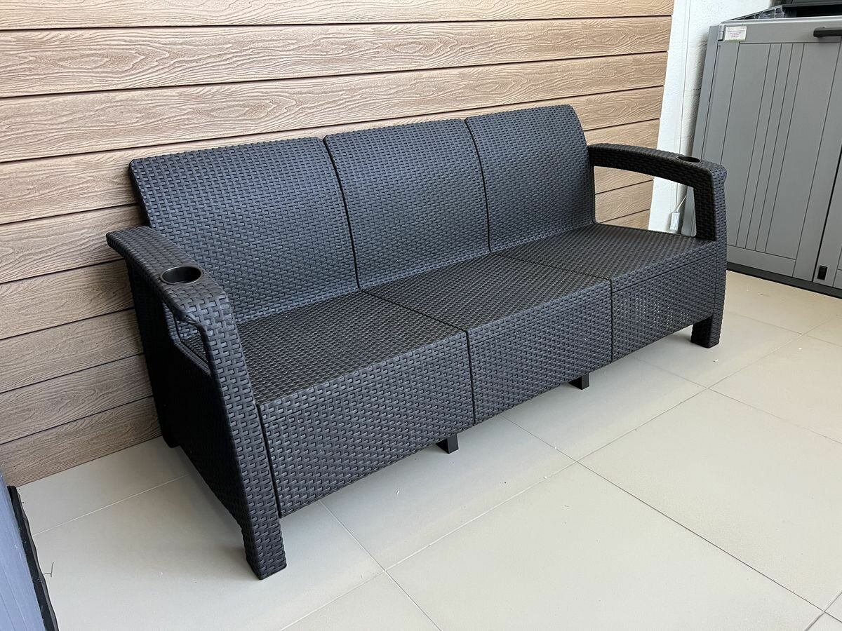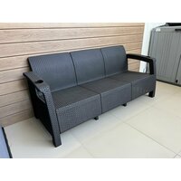 Диван садовый 3-местный под ротанг коричневый, с серыми подушками: сравнение цен, характеристики, фото, актуальное наличие и цены.