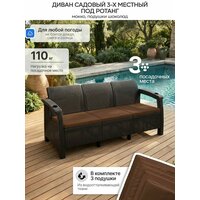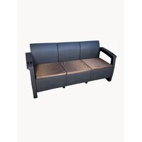 Удобный и стильный 3-местный диван - это отличный способ создать комфортную и уютную зону отдыха на любой террасе. На диване очень удобно сидеть за счет специальной формы спинки, которая идеально поддерживает спину сидящего, также на диване предусмотрены мягкие подушки на сиденья из непромокаемой ткани.