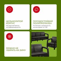 - Состоит из цельнолитых панелей, имитирующих ротанговое плетение, благодаря чему мебель не расплетается и отлично держит форму