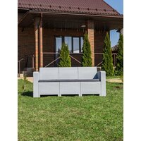 Ключевые преимущества: Прочность и долговечность – каркас пластиковой мебели садовой устойчив к дождю, УФ-излучению и перепадам температур (от -50°C до +50°C) Комфортные подушки – наполнитель из поролона в износостойких полиэстеровых чехлах Современный дизайн – лаконичный и универсальный цвет Практичность – простая сборка (диван трехместный поставляется в разобранном виде) и легкий уход