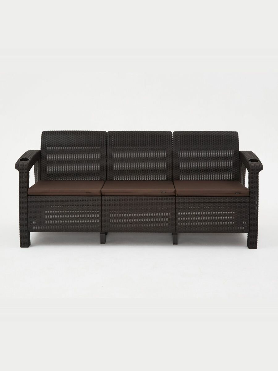Купить Диван садовый, 3-х местный, 188x70x79 см, мокко (с коричневыми подушками) с доставкой по всей России.