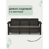 Диван садовый, 3-х местный, 188x70x79 см, мокко (с серыми подушками): сравнение цен, характеристики, фото, актуальное наличие и цены.