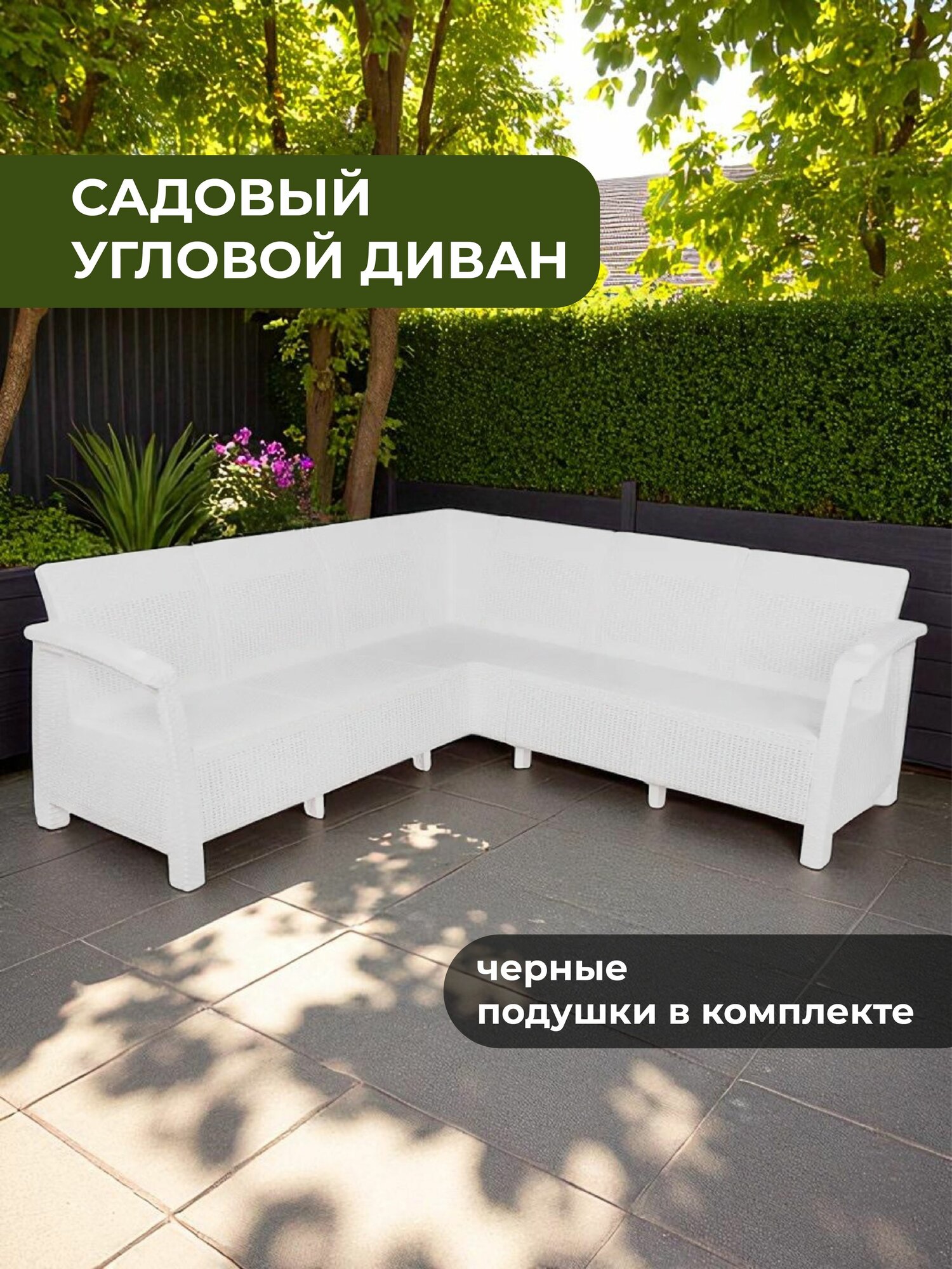 Диван садовый Ротанг L-угловой садовый 146x254x79 см, белый (подушки черного цвета): сравнение цен, характеристики, фото, актуальное наличие и цены.
