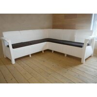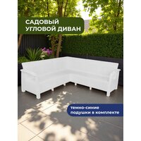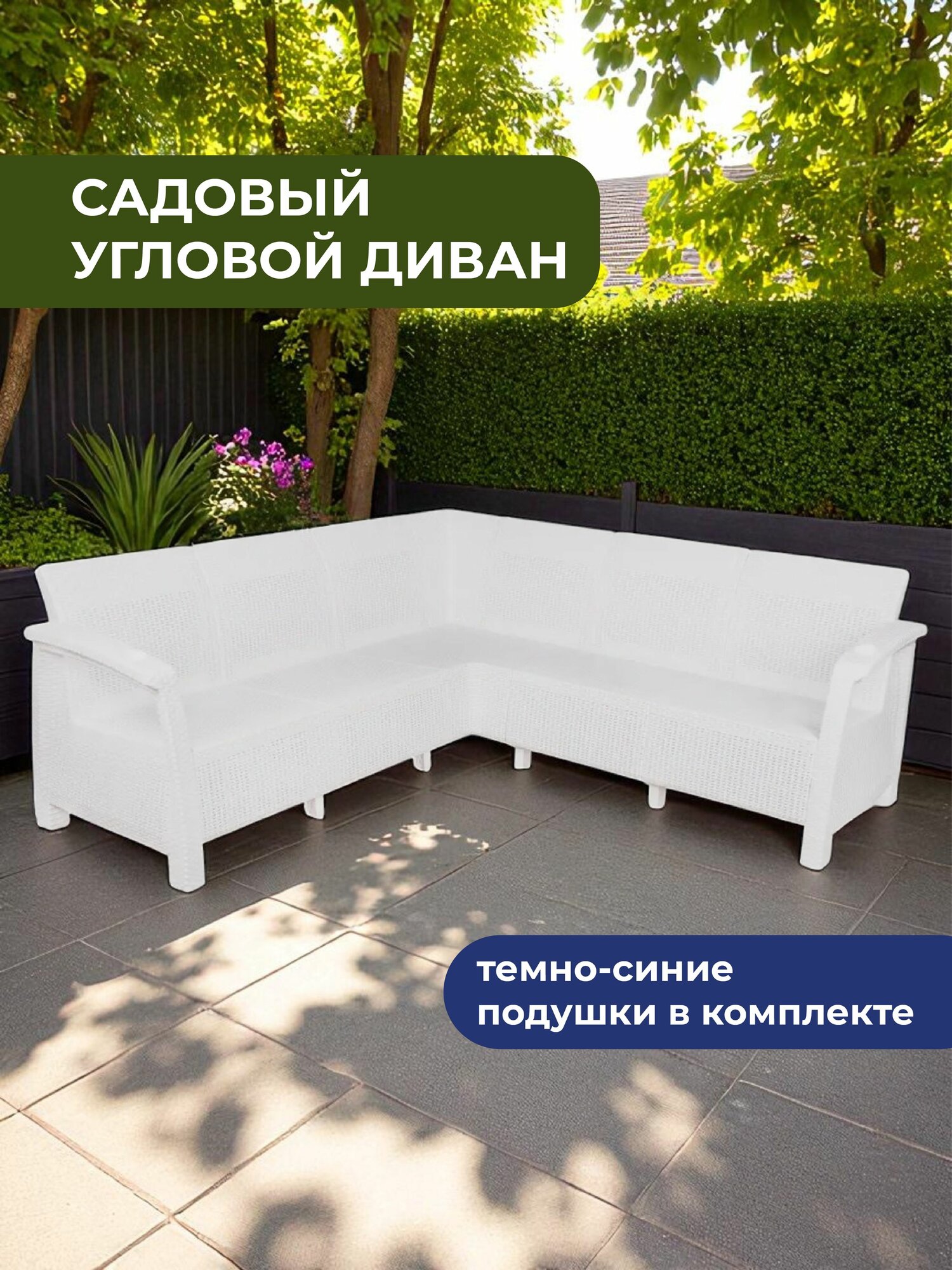 Диван садовый Ротанг L-угловой садовый 146x254x79 см, белый (подушки темно-синего цвета): сравнение цен, характеристики, фото, актуальное наличие и цены.