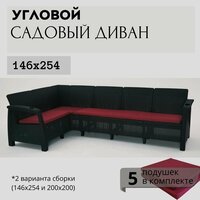 Купить Диван садовый Ротанг L-угловой садовый 146x254x79 см, мокко (подушки бордового цвета) с доставкой по всей России.