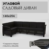 Купить Диван садовый Ротанг L-угловой садовый 146x254x79 см, мокко (подушки черного цвета) с доставкой по всей России.