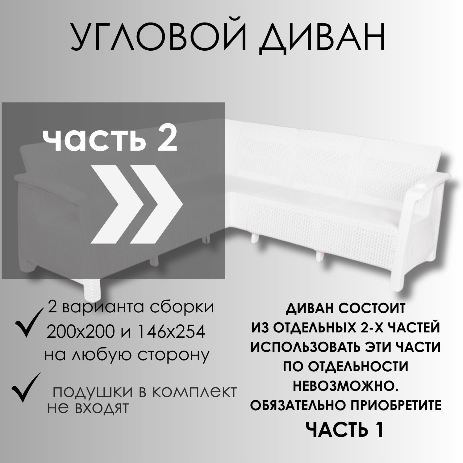 Купить Диван садовый угловой, 200x200x79 см, белый, Часть 2 (без подушек) с доставкой по всей России. Диван садовый угловой, 200x200x79 см, белый, Часть 2 (без подушек): сравнение цен, характеристики, фото, актуальное наличие и цены.