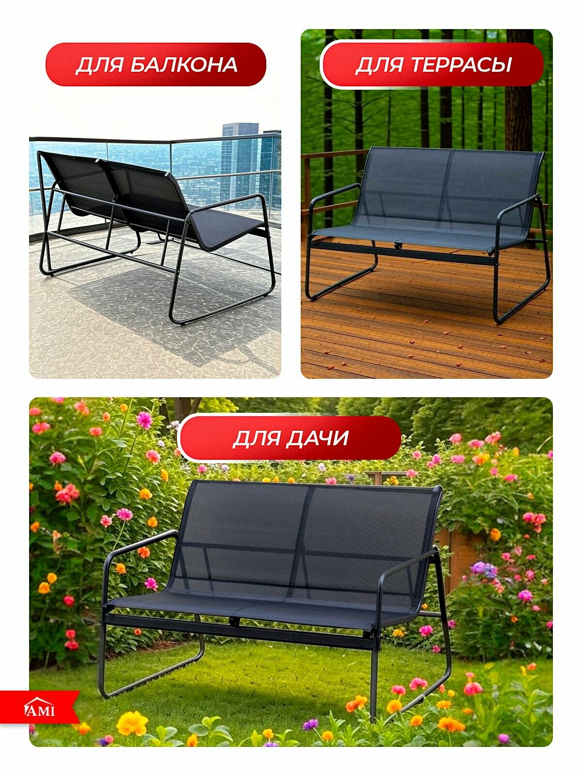 Диван садовый уличный Dakota, 2-х местный для дачи, террасы и сада, стальной каркас, текстилен, цвет черный, Ами Мебель: сравнение цен, характеристики, фото, актуальное наличие и цены.