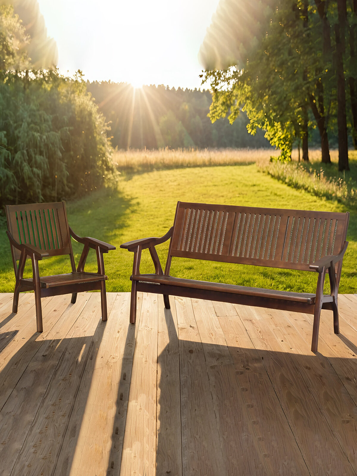 Диван-скамья IFERS Массив решетка, каркас из массива дерева, цвет орех