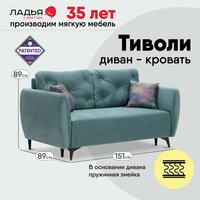 Диван-кровать Тиволи имеет ширину 151 см, глубину 89 см и высоту 89 см, что позволяет удобно расположиться на нем и насладиться временем семьей или друзьями. А спальное место размером 190х121 см станет уютным территорией сна, что сделает каждое утро бодрым и свежим.