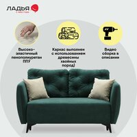 Каркас диван-кровати Тиволи выполнен из древесины хвойных пород, ЛДСП, ДСП, и фанеры, обеспечивая прочность и долговечность конструкции. Опоры дивана выполнены из массива натурального дерева с лакокрасочным покрытием и металла, имеют высоту 13 см. Это обеспечит максимальную стабильность и надежность.