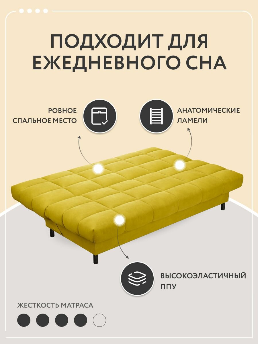 Купить Диван кровать раскладной прямой ППУ Юта D1 в гостиную, клик кляк, металлокаркас, двухспальный, велюр, горчичный, 192х100х98 с доставкой по всей России.