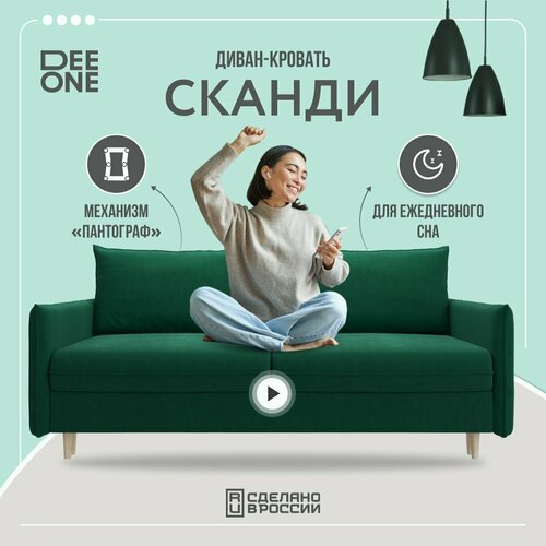 Сканди — ультрасовременная модель в любимом многими скандинавском стиле. Благодаря лаконичным линиям силуэта и простым формам диван отлично впишется в современный интерьер. Деревянные ножки приподнимают модель над полом, делают ее визуально легкой и облегчают уборку под мебелью. Узкие подлокотники экономят пространство и при этом удобные и функциональные. Большие мягкие подспинные подушки обеспечивают комфортную посадку и гарантируют полноценный отдых. Модель Сканди выполнена на базе механизма «Тик-Так» (Пантограф). Чтобы получить спальное место достаточно выдвинуть сиденье и откинуть спинку. Два легких движения и перед вами комфортная кровать для ежедневного сна. Система характеризуется высокой прочностью, надежностью, долговечностью и простотой в эксплуатации.