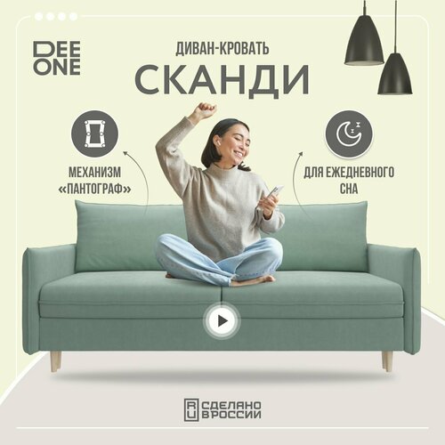 Сканди — ультрасовременная модель в любимом многими скандинавском стиле. Благодаря лаконичным линиям силуэта и простым формам диван отлично впишется в современный интерьер. Деревянные ножки приподнимают модель над полом, делают ее визуально легкой и облегчают уборку под мебелью. Узкие подлокотники экономят пространство и при этом удобные и функциональные. Большие мягкие подспинные подушки обеспечивают комфортную посадку и гарантируют полноценный отдых. Модель Сканди выполнена на базе механизма «Тик-Так» (Пантограф). Чтобы получить спальное место достаточно выдвинуть сиденье и откинуть спинку. Два легких движения и перед вами комфортная кровать для ежедневного сна. Система характеризуется высокой прочностью, надежностью, долговечностью и простотой в эксплуатации.