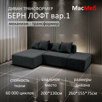 Купить Диван трансформер МасМеб Берн Лофт вариант 1, цвет графит, угол универсальный с доставкой по всей России.