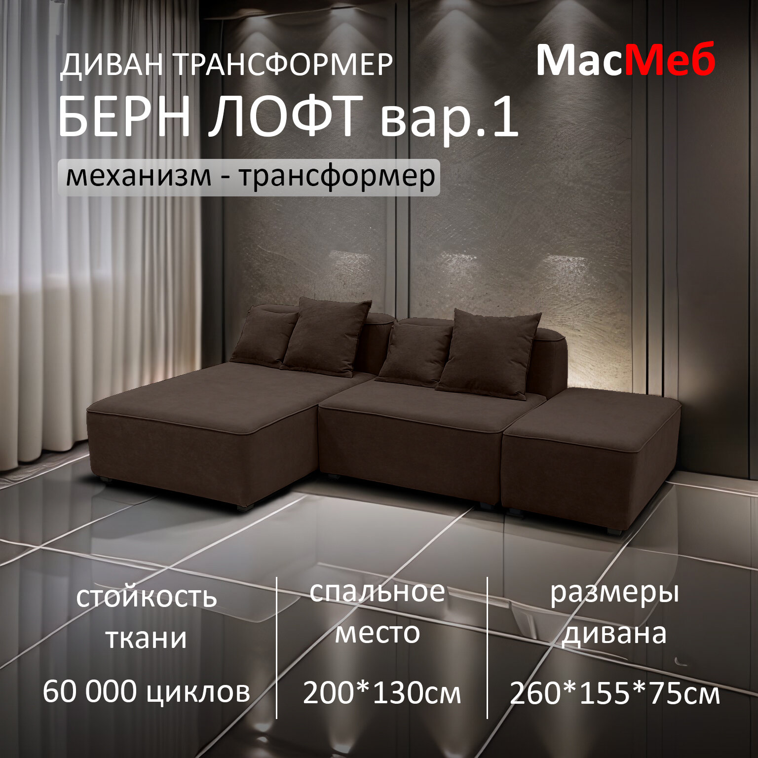 Купить Диван трансформер МасМеб Берн Лофт вариант 1, цвет коричневый, угол универсальный с доставкой по всей России.