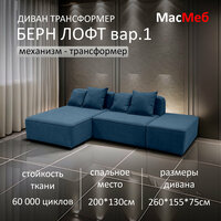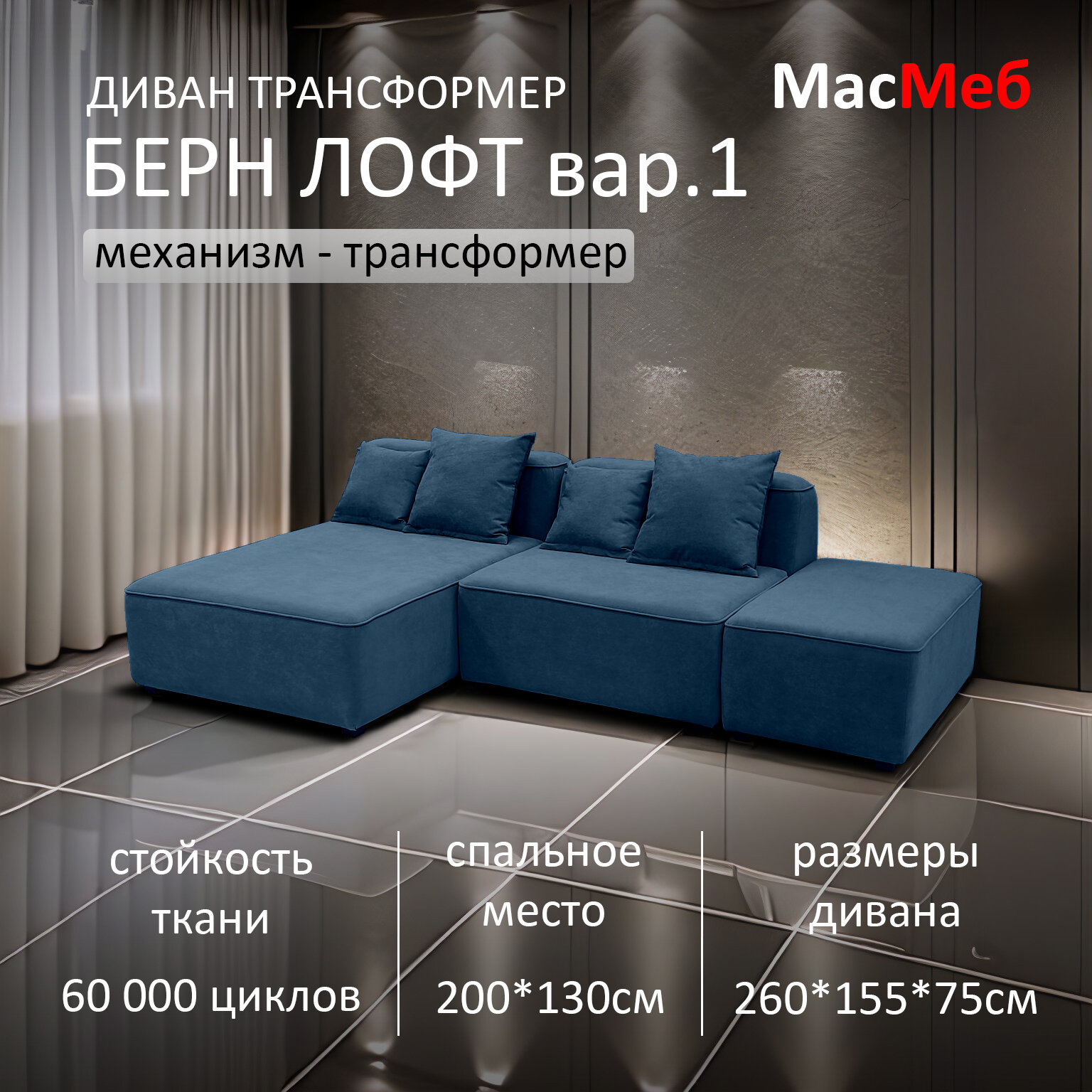 Диван трансформер МасМеб Берн Лофт вариант 1, цвет синий, угол универсальный: сравнение цен, характеристики, фото, актуальное наличие и цены.