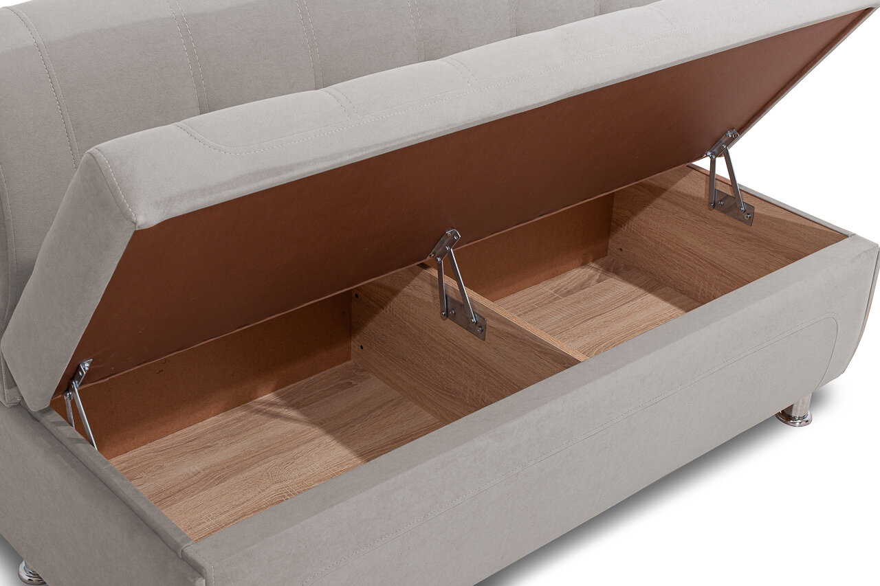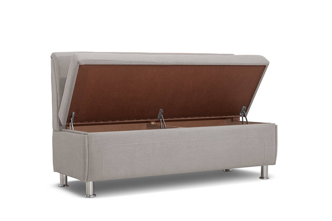Диван "Трапеза-2" оснащен вместительным ящиком для хранения, который расположен под сиденьем. Это позволяет удобно хранить различные предметы, освобождая пространство на полках или в шкафах.