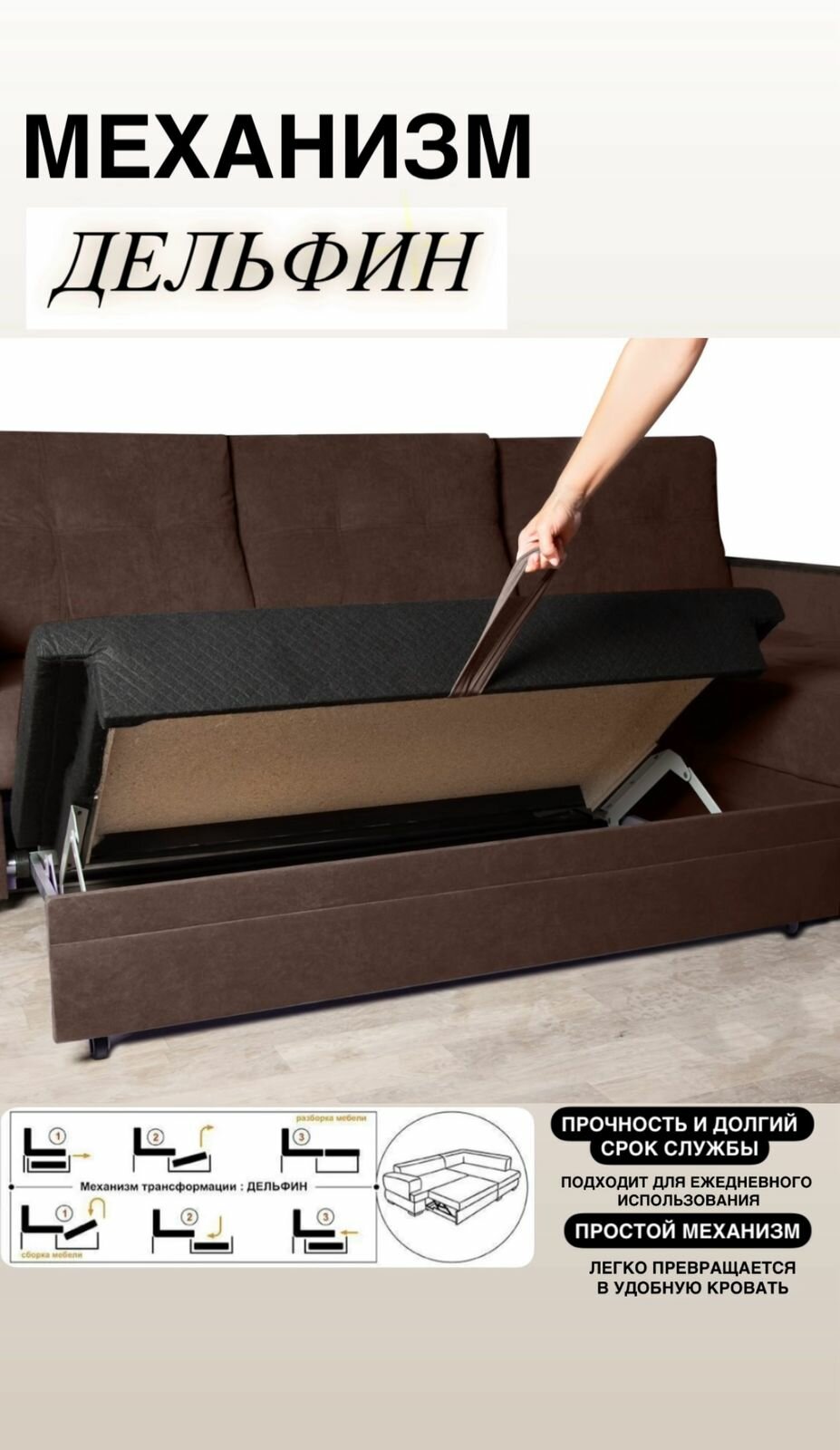 Наполненный ППУ, диван "Атлант" гарантирует максимальный комфорт при сидении и отдыхе. Его мягкие подушки и прочная конструкция позволяют наслаждаться отдыхом после длинного рабочего дня. Кроме того, диван "Атлант" оснащен механизмом "дельфин", который позволяет легко и быстро превращать его в удобное место для сна. Это делает его идеальным решением для гостинных или для тех, кто любит спать на большом и удобном диване.